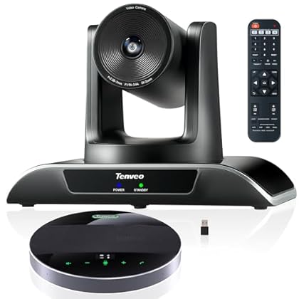 Tenveo All-in-One Conference Room Camera System, 10X Zoom FHD 1080P 60FPS PTZ Conference Camera and Bluetooth Speakerphone with Microphone, for Large Room Conference Remote Meeting Church Worship