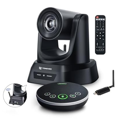 TONGVEO 5.8GHz Wireless Conference Room Camera System | 3X 60fps PTZ Camera with Bluetooth Microphone, 50ft Range, Compatible with Zoom, Skype, OBS - Easy Setup for Worship and Online Meetings