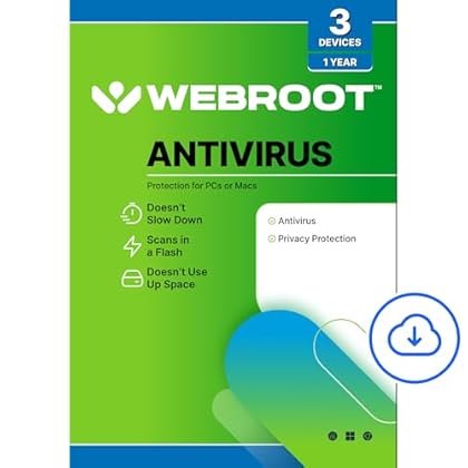 Webroot Antivirus Software 2025 | 3 Device | 1 Year Download for PC/Mac
