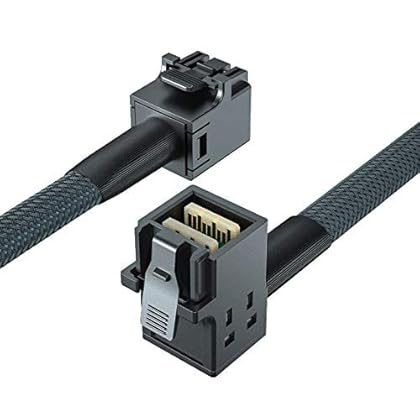 H!Fiber.com 12G Internal Mini SAS HD SFF-8643 to SFF-8643 Cable, Straight to Right Angle, 0.5m, 36 Pin, with Sideband, 100 Ohm, Support RAID, PCIE Controller, Flexible, 0.5-Meter(1.6ft)